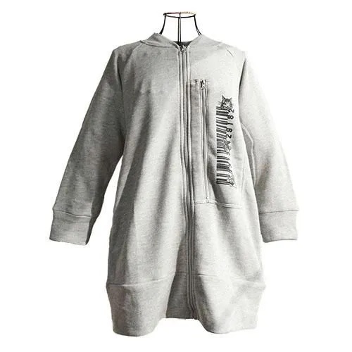 大きなバーコードがプリントされた、長めのカーディガンです。