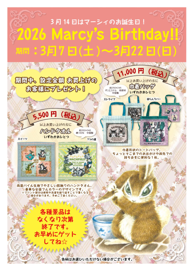 さて、店頭ではMarcy’a Birthdayが始まりました。